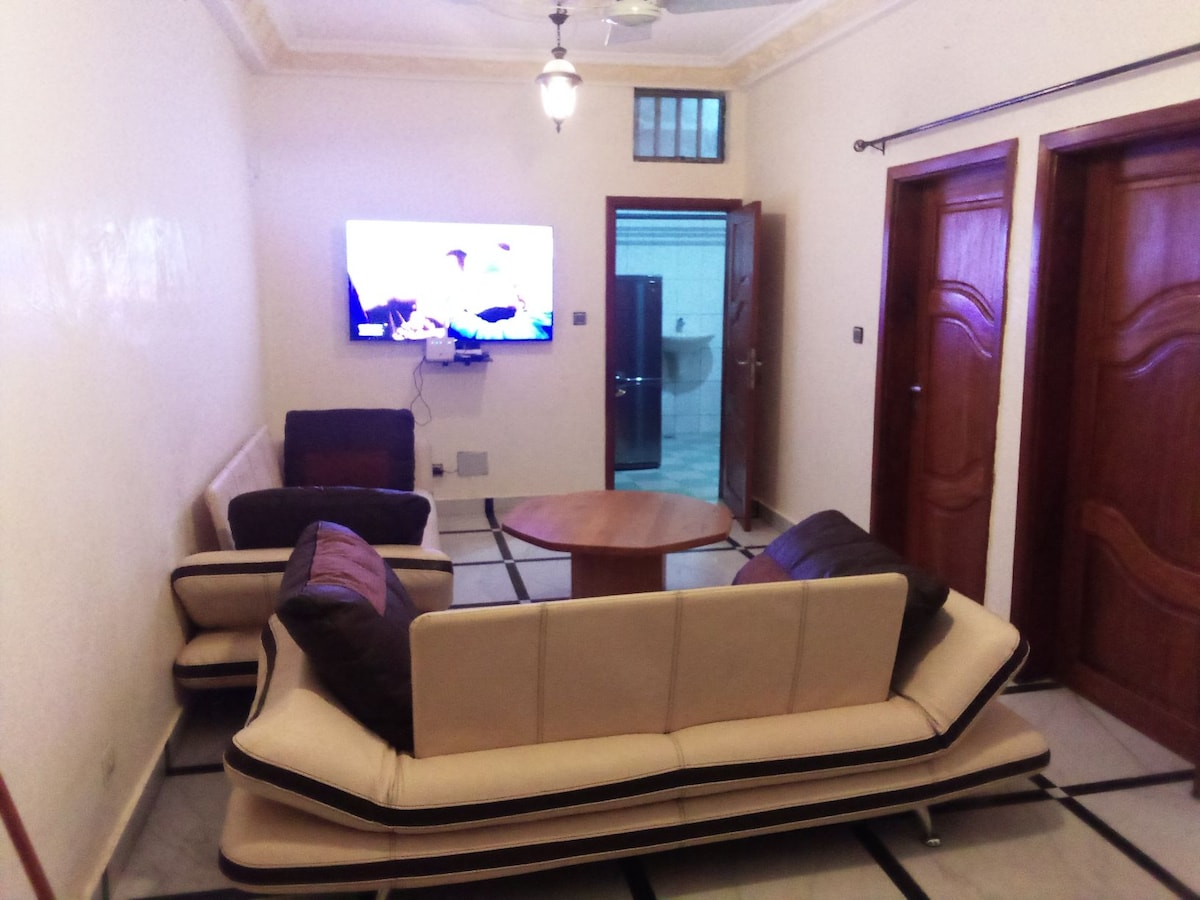 Este departamento de un dormitorio está ubicado en Tanto Tanto, Akpakpa Cotonou. A menos de 2 minutos de Erevan Akpakpa. Las ventajas incluyen servicio de limpieza semanal, un jardín, un espacio de trabajo, aire acondicionado, TV, microondas, estufa de gas, nevera, Wi-Fi. Las facturas de agua y gas están incluidas en las tarifas de Airbnb. La electricidad la paga el huésped, tenemos un contador preparado. Dependiendo del uso de la electrónica, espere consumir hasta 2000 cfa - 3000 cfa al día ¿Qué estás esperando? ¡Nos encantaría hospedarte!