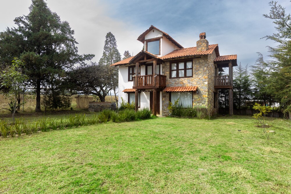 Cabaña tipo Chalet con hermosos alrededores y ambiente campestre. La propiedad está situada en Huasca de Ocampo, Hidalgo, primer Pueblo Mágico en México. Este Chalet cuenta con 3 dormitorios y un amplio jardín. Recomendamos traer su propio automóvil para conocer los alrededores. La propiedad esta ubicada a 15 min del centro histórico de Huasca