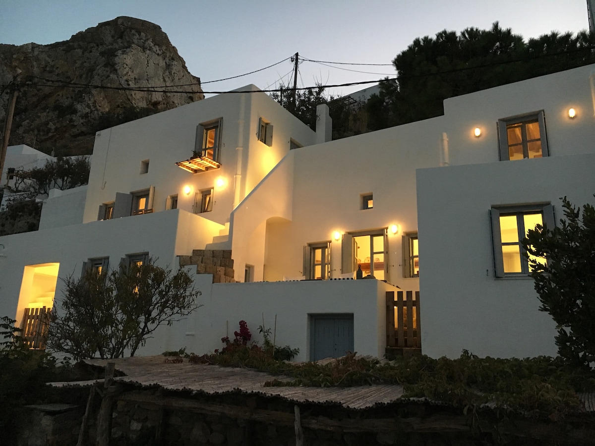 Ubicado en las rocas de Chora bajo el castillo que existía desde los años prehistóricos, la parte más tranquila y pintoresca del casco antiguo de Skyros. Delante del infinito horizonte del Egeo, observando el sol y la luna saliendo del mar. La casa ofrece todas las comodidades para relajarse y disfrutar de una estancia inolvidable.