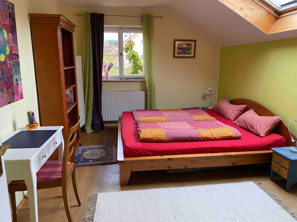 ¡Disfruta de la «Gemütlichkeit» cerca de Múnich! ¡Alójate en nuestra acogedora ciudad o toma el tren suburbano (S 3) para llegar a la ciudad de Múnich sin cambios en menos de 20 minutos! Al tener tu dormitorio privado, baño y cocina, es fácil pasar un buen rato en Baviera. Lo más destacado: ¡tu sauna privada en el baño! La planta superior de nuestra gran casa es un apartamento independiente y es accesible a través de la escalera compartida. Con mis tres hijos y mi perro vivo en la planta baja y en la primera planta.