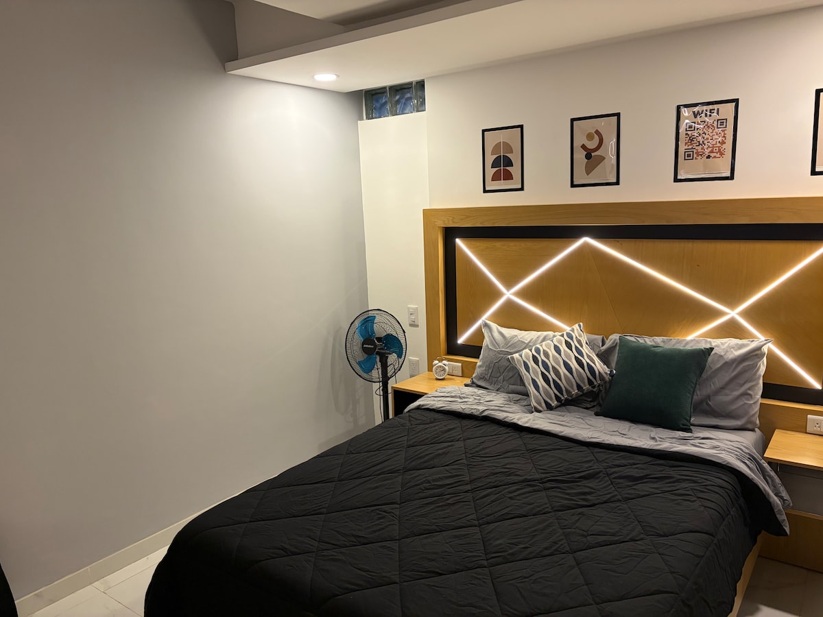 ¡Tu hogar perfecto en Airbnb! Con una ubicación ideal en una zona tranquila y segura, estarás rodeado de tiendas, restaurantes y atracciones turísticas emocionantes. Internet, cocina equipada, estacionamiento, Netflix, servicio 24 horas y resguardo de equipaje. Trabaja, relájate y disfruta con nuestra conexión rápida y cocina completa. Cuenta con estacionamiento reservado, atención al cliente 24/7 y servicio de resguardo de equipaje. ¡Reserva ahora y vive una experiencia inolvidable!