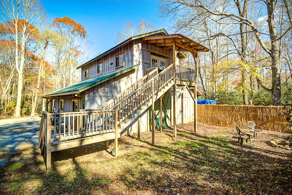 Deja que tu corazón se rejuvenezca mientras escuchas el arroyo y te sumerges en la belleza de la granja de caballos. Este loft/cabaña de arriba recién terminado forma parte de un antiguo granero histórico construido en el siglo XIX y utilizado como uno de los primeros Pony Express. Decorado de forma única con grandes ventanales y unas vistas estupendas de los pastos y las montañas lejanas, tu santuario está a solo 6 millas de Damascus, VA, a 45 minutos de Boone, NC, y a 25 minutos de Abingdon, VA. ¡Disfruta del sendero del Bosque Nacional Cherokee que conduce a una cascada doble!