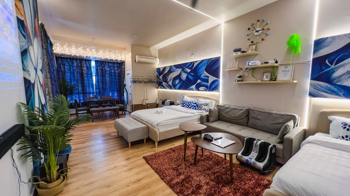 NEW Condo Near Mount Austin, IKEA, & Toppen. Escape to our stylish, Moderm Minimalist inspired 2BR condo on the 33rd floor in Johor Bahru. Perfect for families, couples, or business travelers, with HD Projector, Netflix, hi 5g WiFi, a kitchen, and 2 dedicated free car park slots with easy access. Near the vibrant food district of Mount Austin. Enjoy convenient access to various restaurants, cafes, and local eateries, all just minutes away.