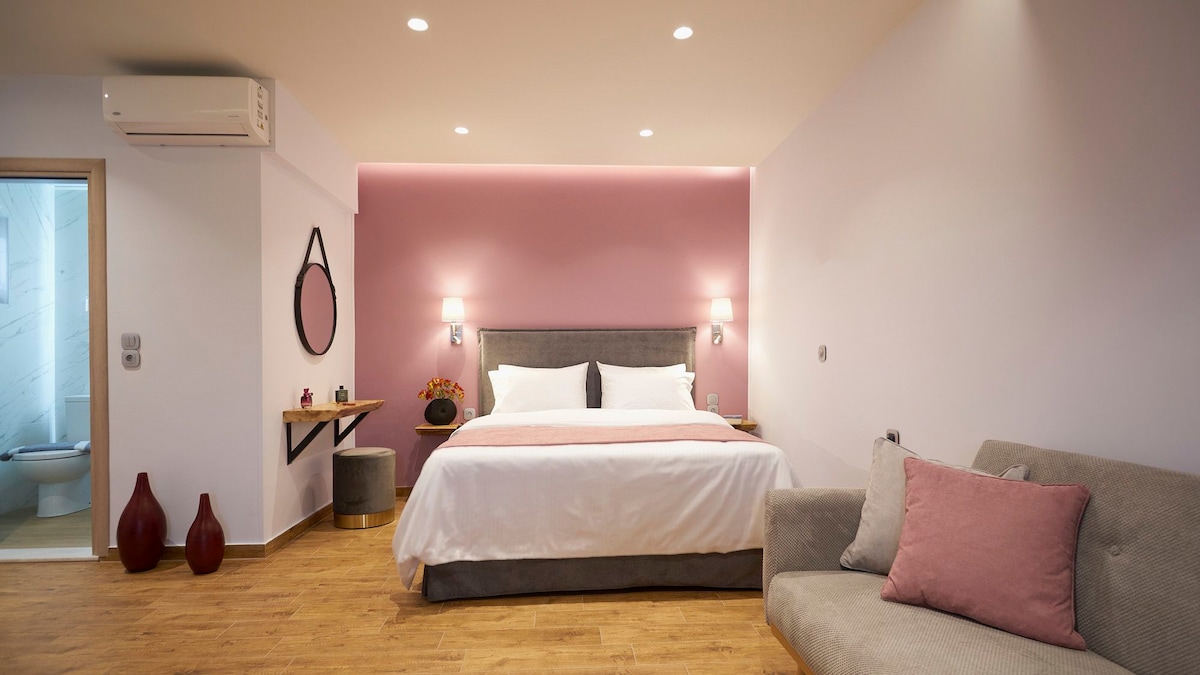 Escápate a Seafront Suites, un escondite privado junto a un mar azul celestial en la impresionante playa de Hersonissos. Ubicado en una bahía tranquila y apartada con vistas panorámicas y puestas de sol que deslumbran, el resto del mundo no existe, lo que te da libertad para liberar tus responsabilidades y vivir por el momento. Más información Nuestra suite de lujo con vistas al jardín es moderna y minimalista con habitaciones extremadamente cómodas, tonos tierra y toques modernos para calmar la mente y calentar el alma.