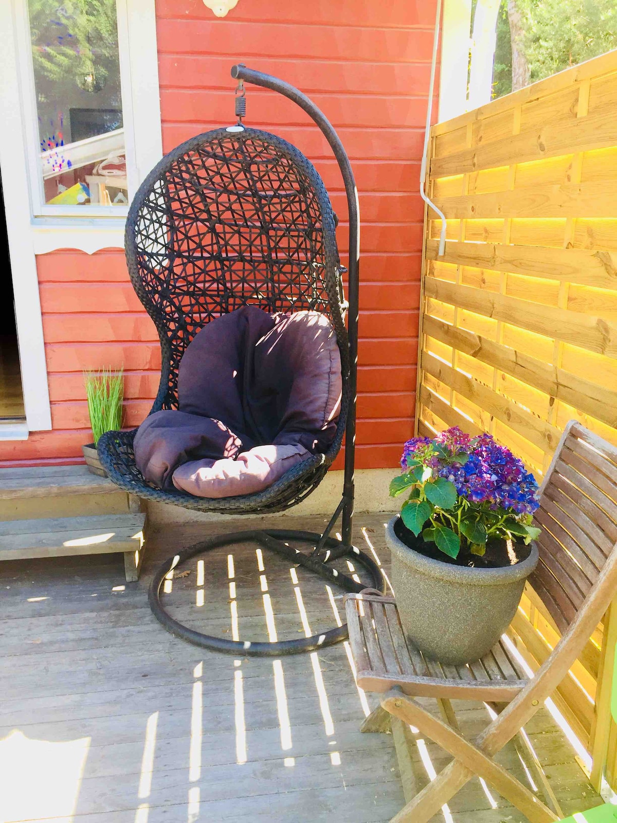 ¡Da la bienvenida a nuestro encantador departamento ubicado en Åsen! Aproximadamente a 5 minutos a pie de la estación de tren/centro de viajes (500 metros) y aproximadamente a 10-15 minutos a pie del centro de la ciudad. El departamento se encuentra en Enköping, con proximidad a todo lo que la ciudad tiene para ofrecer. El departamento tiene 55 metros cuadrados y tiene un dormitorio, baño, cocina y sala de estar. La cocina está totalmente equipada, incluida la cafetera, la máquina de cápsulas, la tostadora y el hervidor, etc. Hay toallas y artículos de higiene disponibles. Hay una silla de bebé y platos para niños disponibles, así como un sofá cama en la sala de estar.