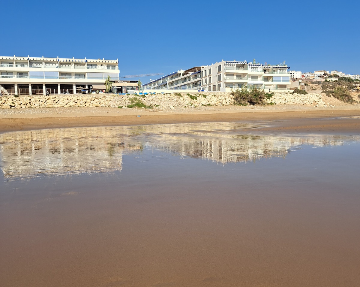 Apartamento tranquilo en Aourir, entre Agadir y Taghazout, a solo 10 pasos de la arena dorada. Disfruta de unas impresionantes vistas directas al mar desde el gran balcón, perfecto para las puestas de sol. El apartamento ofrece una piscina compartida, un espacio luminoso y cómodo, y una cocina totalmente equipada. Hay una pequeña tienda local cerca, con cafeterías y restaurantes a poca distancia en coche. Ideal para familias y amigos que buscan una escapada relajante junto al mar. 🌊✨
