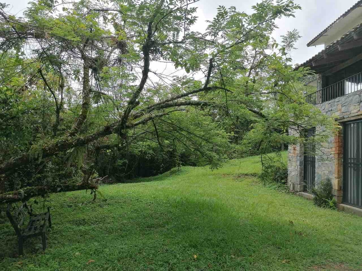 Es una estancia en planta alta con balcones en las habitaciones tiene buena vista hacia las montanas y muy buena iluminacion, las habitaciones tienen una cama king size, en total son 3 camas king size. su television, su ventilador. el departamento cuenta con su cocina integral,frigobar,parilla,cafetera,licuadora trastes para cocinar.Estamos por la carretera nacional y a 5 minutos en automóvil del jardin surrealista. **** no aceptamos mascotas.