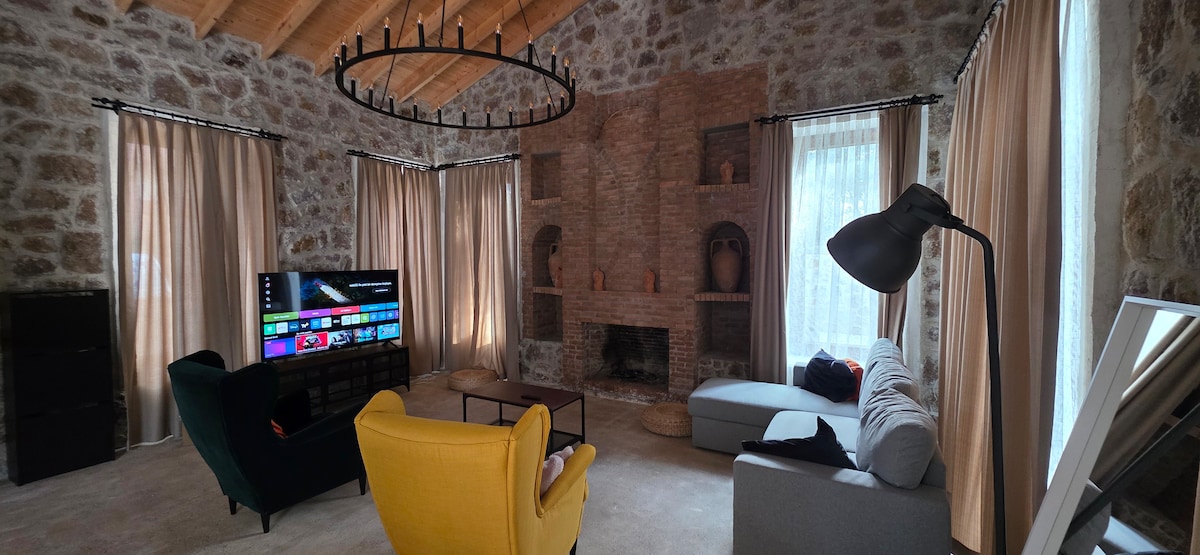 Casa griega de piedra agradable y tranquila con jardín