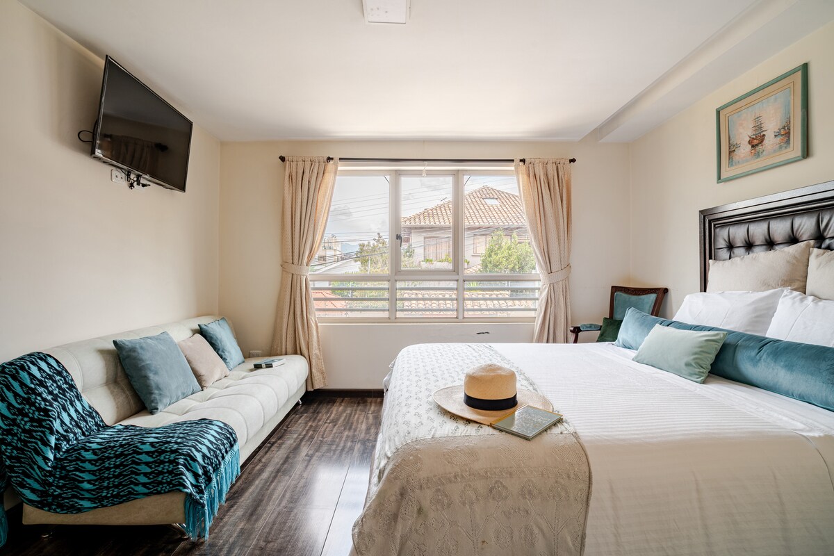 Spacious condo in the Historic Center filled with natural light, with your own private rooftop terrace offering some of the best views of the Cathedrales, the historic center and the surrounding Andes! Nestled in the heart of the historic center, this stay is close to everything but still quiet and peaceful for restful nights. Located in the peaceful San Sebastián neighborhood, it’s a relaxing retreat with plenty of nearby activities to enjoy. This is the perfect home base in Cuenca!