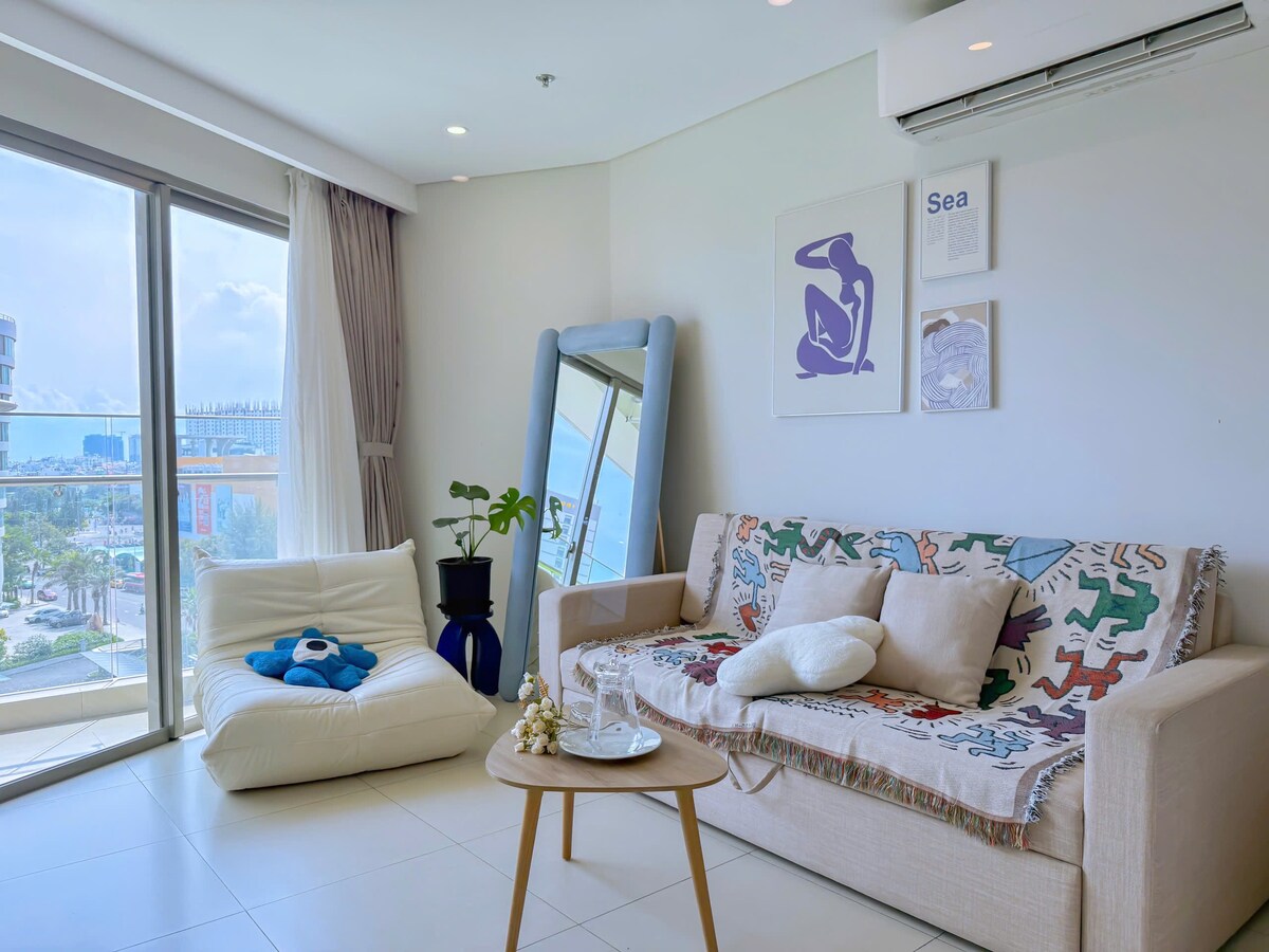 Apartamento minimalista y totalmente amueblado de 1 habitación en el piso 15 con espectaculares vistas al mar. Ideales para parejas o familias con un niño menor de 5 años. Perfectamente situado junto a la playa trasera (playa de Thu ! Vân). Horarios estimados para caminar a los servicios cercanos: - A 2 minutos de la playa al otro lado de la calle. - A 5 minutos de la tienda de comestibles más cercana las 24 horas, los 7 días de la semana (GS25) - A 8 minutos del supermercado más cercano (Lotte Mart). Ascensores rápidos. Netflix gratuito. También tenemos una moto disponible para alquilar.