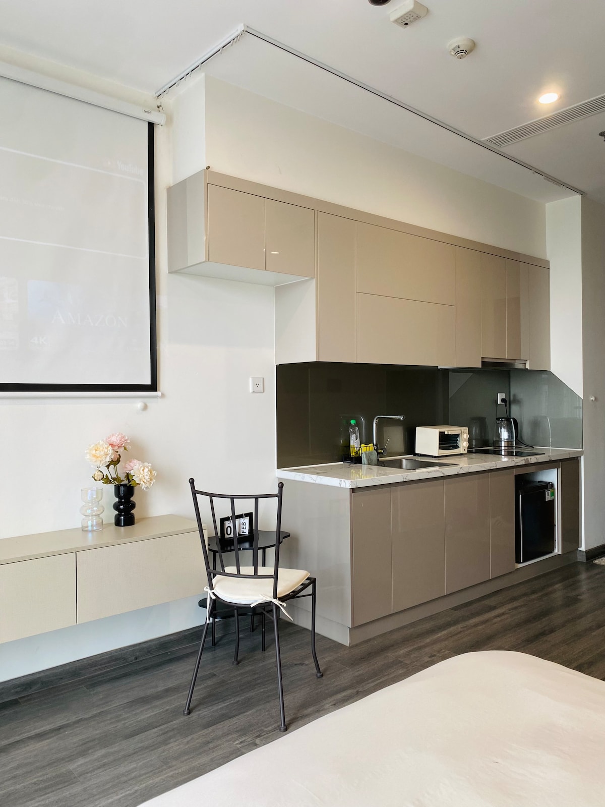 Habitación romántica, disfruta de Netflix y relájate Con un diseño con tono blanco y negro como la decoración dominante y ligera con estilo artístico europeo, con acogedoras luces amarillas, un balcón orientado a la ciudad, un proyector con Netflix para relajarse por la noche, una pequeña cocina para cocinar deliciosos platos para ti... definitivamente te ayudará a tener experiencias especiales de sanación del alma.