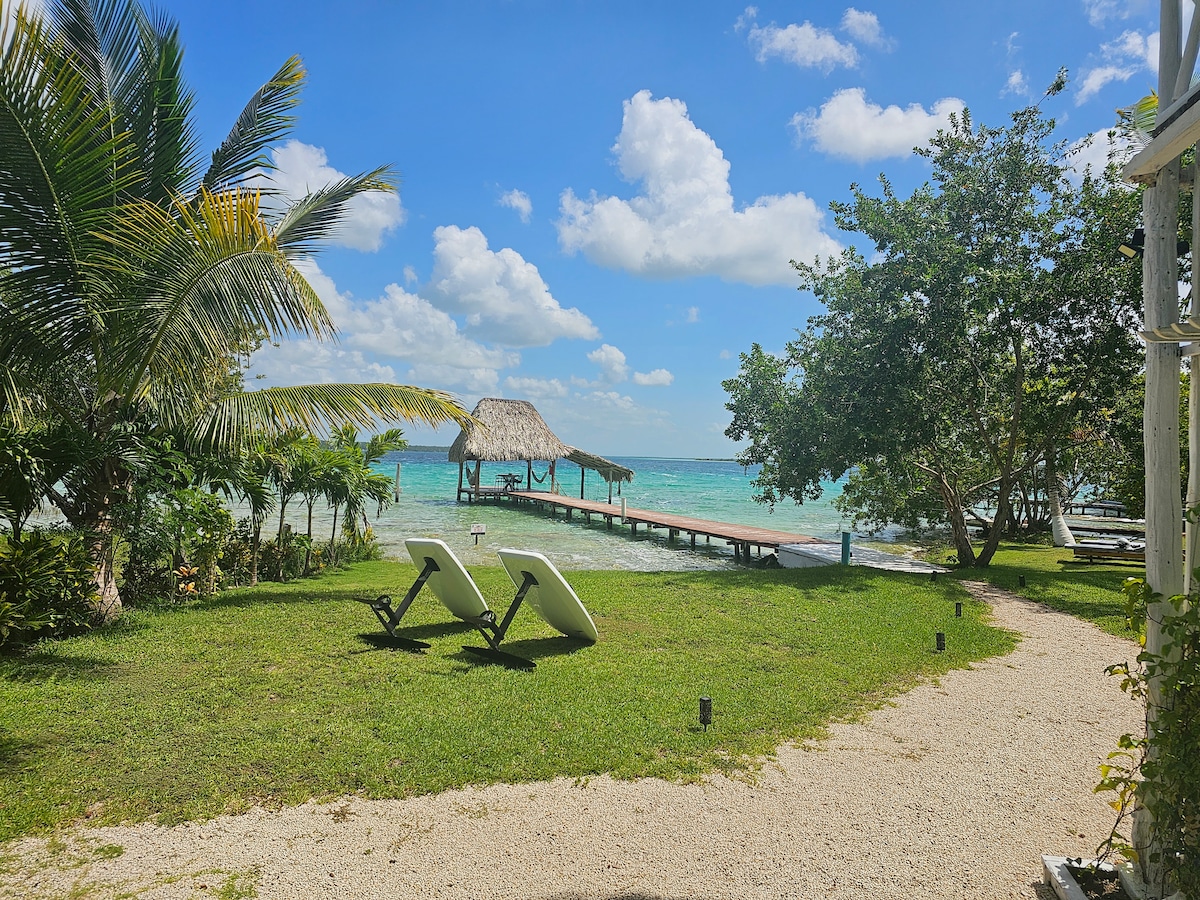Hermosa ubicación en la laguna, serena y alejada el movimiento de la ciudad. A pocos minutos manejando del centro de Bacalar. El espacio en la laguna es pacífico y privado de otras propiedades. En la propiedad hay otras dos unidades, con quienes se comparte el acceso a la laguna. En el área de la laguna hay un muelle y dos terrazas, ofreciendo suficiente espacio para nuestros huéspedes.