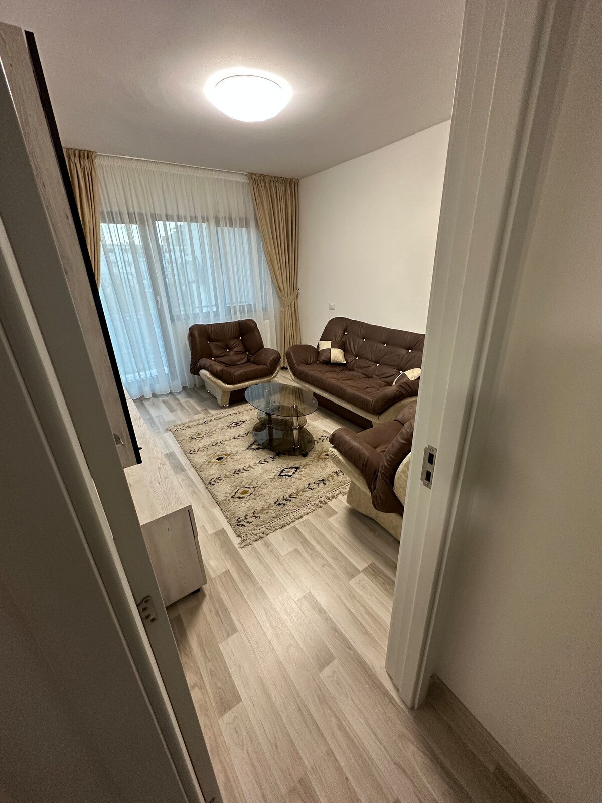 El moderno apartamento de 2 dormitorios,ubicado a unos 1,7 km del aeropuerto de Bacau,es el lugar ideal para turistas de ocio, tránsito o gente de negocios. En este elegante lugar puedes alojar hasta 6 personas con 2 dormitorios totalmente amueblados y un sofá cama en la sala de estar. ¡Balcón cerrado para fumadores ! La cocina está totalmente equipada con cafetera con cápsulas de té yagua . El baño tiene ducha y productos de inodoro incluidos, así como toallas limpias.