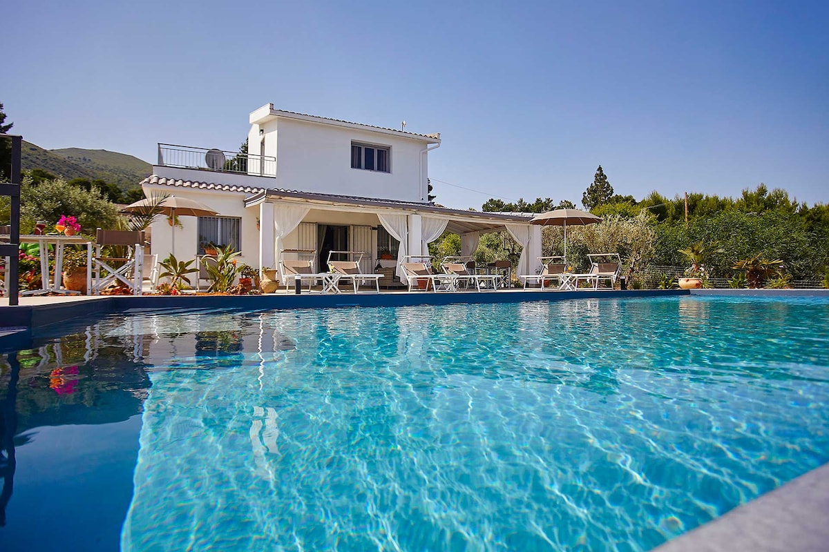 Soggiornerete al piano terra della mia villa a 3 minuti a piedi dal mare, composta da due appartamenti separati. *Non condividerete tutti gli spazi esterni con gli altri ospiti*. L'appartamento gode di un ampio spazio esterno con tavolo da pranzo, divanetti e sdraio, il parcheggio è privato. La villa si trova in una delle aree più suggestive di Scopello, a 200 metri dalla bellissima spiaggia di Cala Mazzo di Sciacca, ed è circondata da un ampio giardino alberato e una suggestiva vista mare