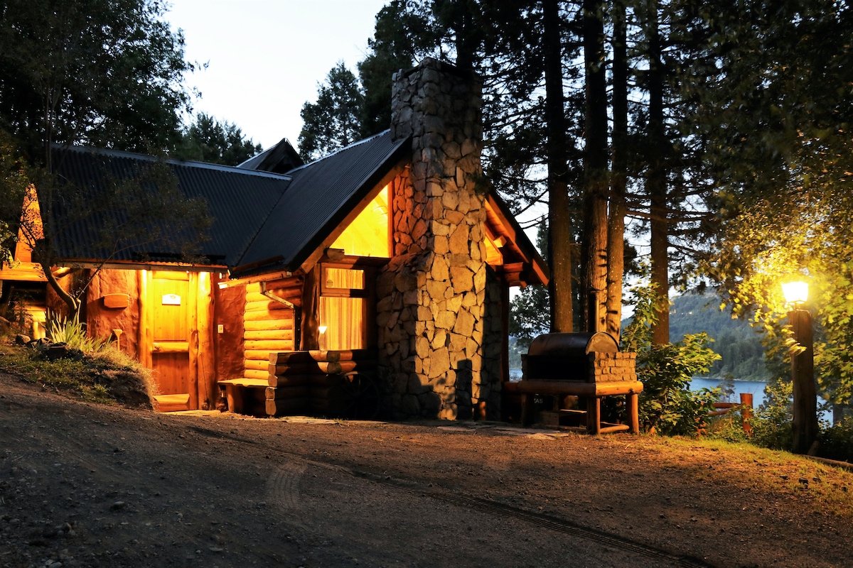 Cálida cabaña de estilo rústico a orillas del lago Nahuel Huapi con hidromasaje, hogar a leña, y deck. Monoambiente creado para el relax y el romanticismo con vista al amanecer y salida de la luna sobre el lago. Smart TV e internet por FIBRA OPTICA con wifi para trabajar. Una kitchinette con todo lo necesario, incluyendo cafetera dolce gusto. Caja de seguridad para resguardar tus notebooks al ir de paseo. Baño completo. Pool, ping-pong. Playa: Kayak y standup paddle. Desayuno continental.
