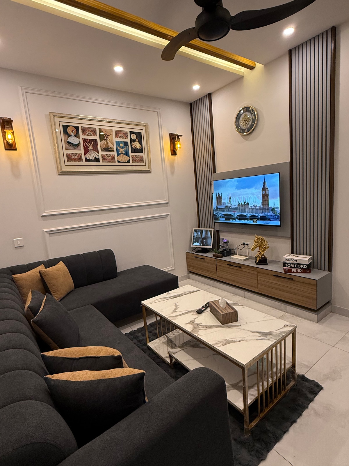Stay in the heart of Bahria Town Lahore, steps from the iconic Clock Tower. This modern luxury studio blends style, comfort, and convenience—ideal for business trips, romantic getaways, or weekend escapes. Enjoy a king-size bed, cozy L-shaped sofa, smart TV, kitchenette, fridge, microwave, fast Wi-Fi, and AC. Walk to top restaurants, cafes, and malls. Perfect for couples and professionals seeking a peaceful, private, and secure stay. Please note cnic is must for all guests