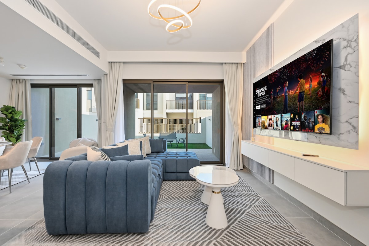 Esta moderna y lujosa villa de 5 dormitorios tiene capacidad para 9 huéspedes. Disfruta de 5 baños elegantes, una cocina de planta abierta con electrodomésticos de última generación y amplias salas de estar y comedor. Relájate en la cocina al aire libre con barbacoa integrada, un cómodo sofá y una piscina de agua dulce. Ubicado en Dubai Hills Estate, está a solo 15 minutos del centro de Dubái, con limpieza y desinfección quincenales para una estancia impecable y sin estrés. Es un hogar perfecto lejos del hogar, con cada detalle diseñado para tu comodidad y privacidad.