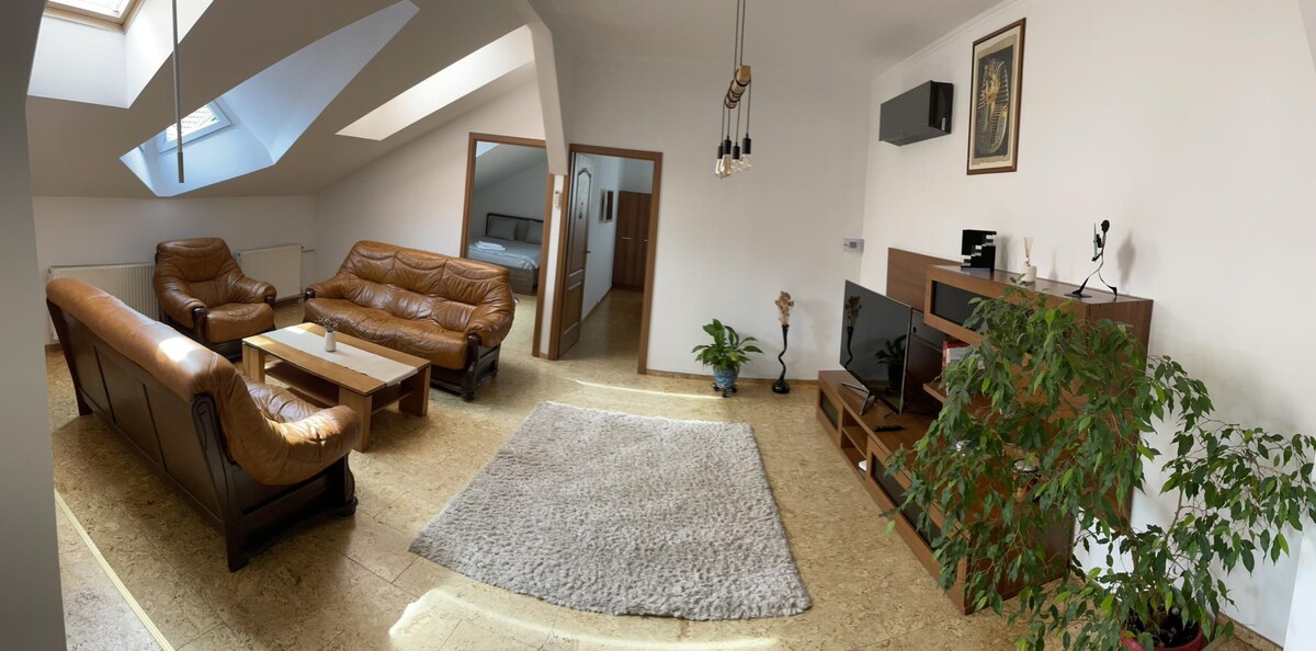 Tágas apartmanunk (90nm2) Székelyudvarhely központi részén helyezkedik el. Szomszédságában található reggeliző , étterem ,pékség, kávézók,üzletek . Ingyenes magánparkolóval (2 autó ) és wi-fi-vel várja a vendégeket. A teljesen felszerelt konyha, két darab síkképernyős Tv, légkondicionáló biztosítja az itt tartózkodás kényelmét. Önálló bejutás az intelligens zár használatával . Gyere el barátaiddal / családoddal és fedezd fel Székelyföld kincseit !🤩