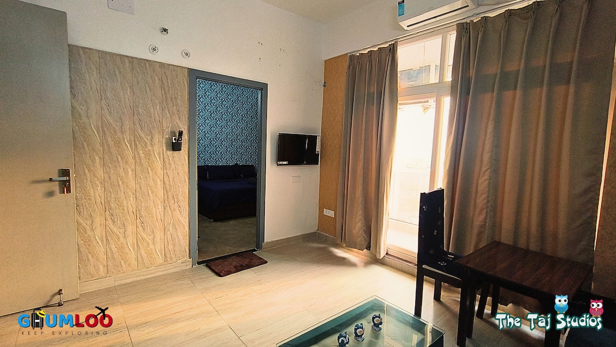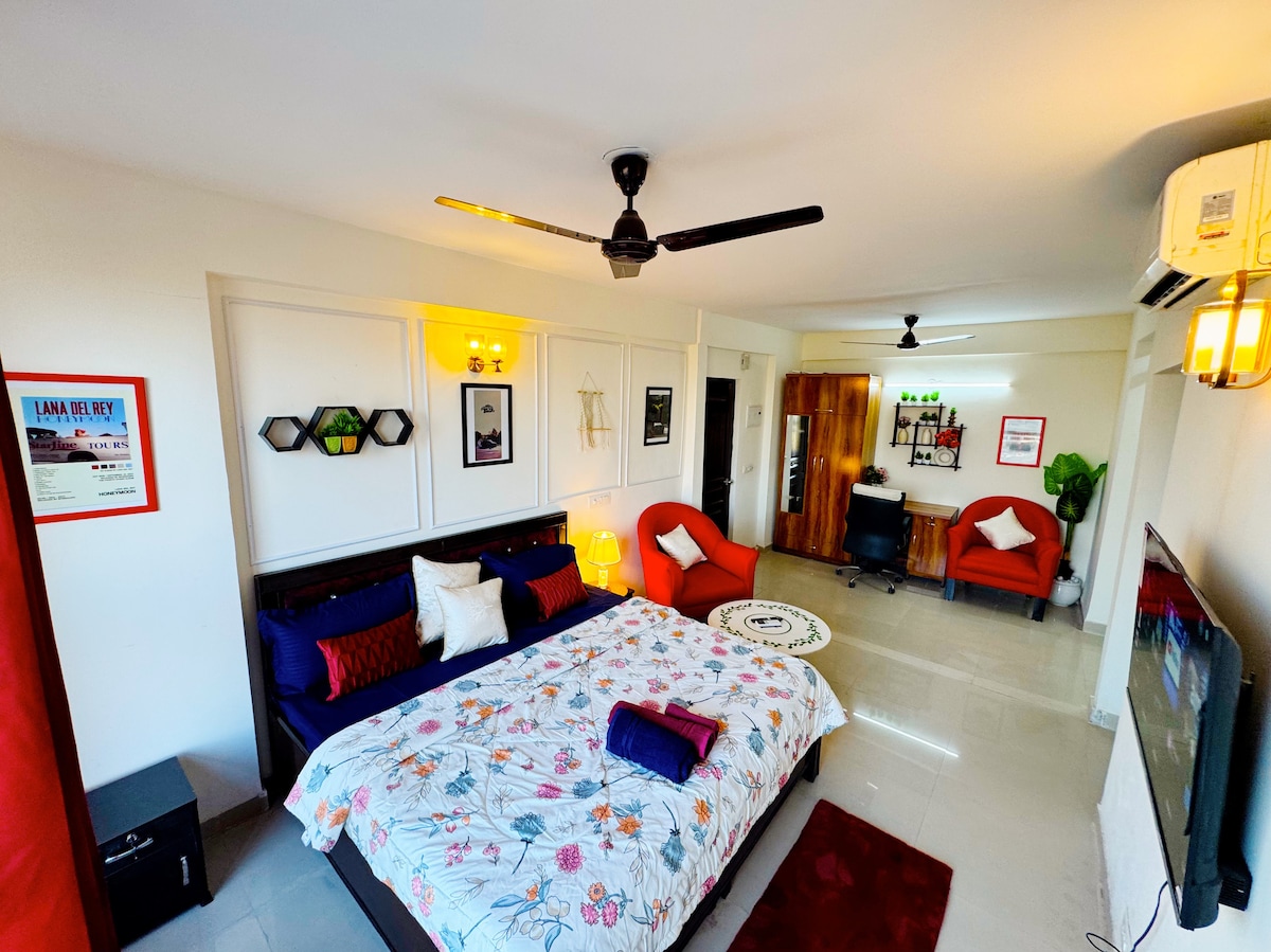 Nuevo apartamento estudio de 500 pies cuadrados de JP Homestays Nuestro alojamiento es: - Apto para familias / solteros/solteros - Gates Society con seguridad las 24 horas, los 7 días de la semana. - Estación de metro más cercana Sec 143 Noida - A poca distancia a pie del Oxygen Business Park, etc. - A 100 metros del mercado con todo lo esencial, farmacia, bancos, salón, restaurantes y más. También incluye: - Cocina modular totalmente equipada y funcional. - RO, microondas, inducción, hervidor, mezclador, utensilios - Wifi de alta velocidad - Estacionamiento gratuito. - Respaldo de energía.