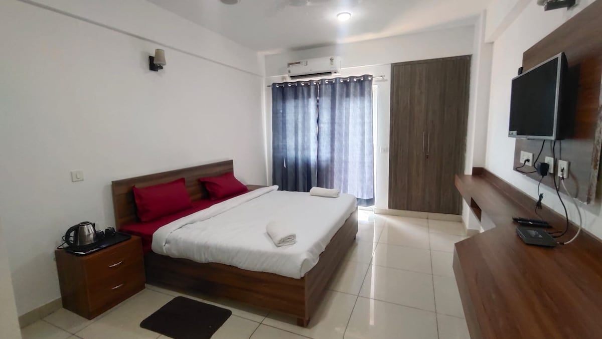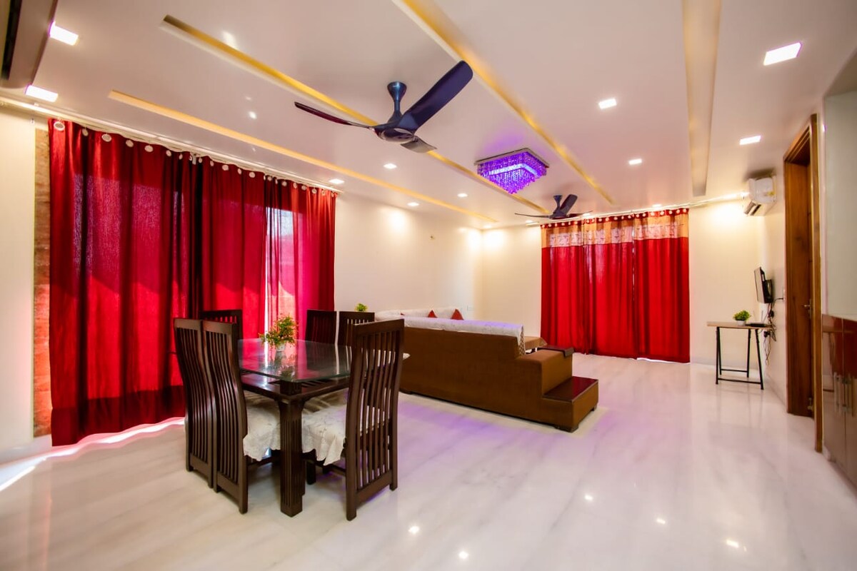 ¡Te damos la bienvenida a Sadharan Homestays! Nuestro apartamento tipo estudio privado en Kailash Hills ofrece una estancia lujosa, perfecta para estancias tranquilas en familia y con amigos. NO SE permiten fiestas ruidosas. Situado en la 4.ª planta sin ascensor, nuestro personal disponible 24/7 te ayuda con el equipaje y más. Cocina como un profesional en una cocina totalmente equipada o toma comestibles y llama a nuestro cocinero para comidas hogareñas. Disfruta de una experiencia de ducha terapéutica con lluvia, cascada, columna, niebla y terapia de vapor. ¡Ahorra un 18% en reservaciones de negocios con factura GST!