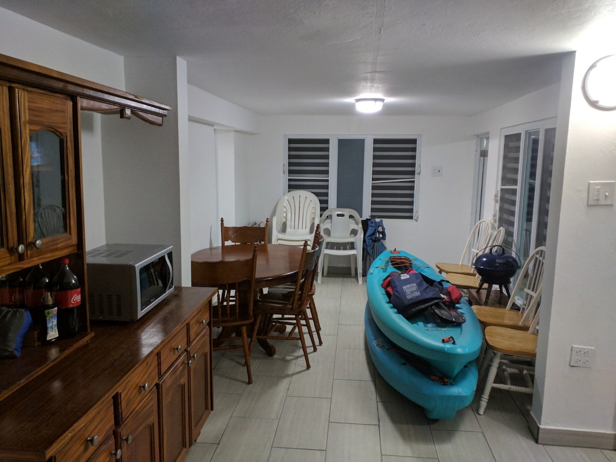 Villa Pesquera es una hermosa playa y zona de pesca ubicada en el mar Caribe en Patillas, Puerto Rico. Esta popular ubicación cuenta con restaurantes, quioscos, alquileres de playa al aire libre, pescado fresco y una reserva natural que puedes explorar. El alquiler es para el primer piso completo que contiene 2 dormitorios, 1 baño completo, 1/2 baño al aire libre, cocina completa, sala de estar, aparcamiento cerrado para 1, un increíble patio trasero con chimenea al aire libre, barbacoa y microcervecería privada. Mi esposa y yo vivimos en el segundo piso con nuestro bulldog inglés.