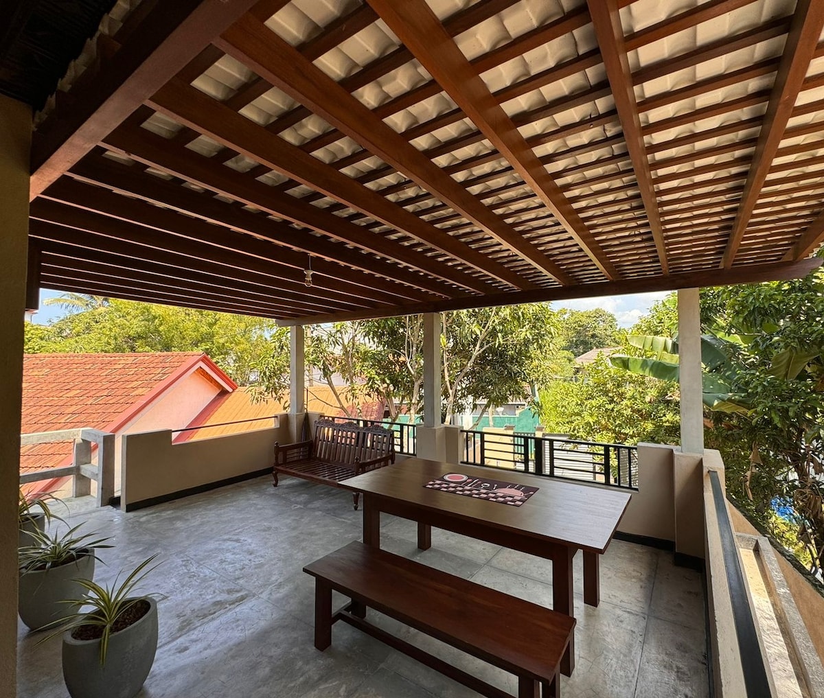 Nuestra casa de playa privada en Hikkaduwa ofrece impresionantes vistas del atardecer sobre el océano Índico. 🌅 Disfruta de la espaciosa terraza, acceso directo a la playa y oportunidades de surf para principiantes. 🏄♂️ La casa incluye una cocina totalmente equipada, un baño moderno, aire acondicionado e internet de alta velocidad para trabajar a distancia. 💻 Con techos altos y tiendas locales de frutas y verduras cerca, combina la tranquilidad costera con comodidades modernas para la relajación y la productividad. 🧘♀️