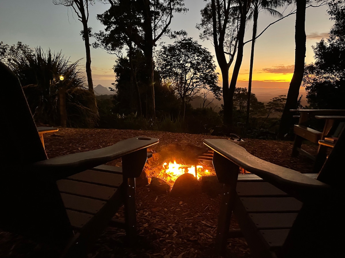 Charming Cabin set in a peaceful location overlooking The Glasshouse Mts. Cosy up around a fire outdoors telling yarns into the night beneath the stars, then retire to comfort- beats camping in a flimsy tent. Perfect for day trips to hike the trails of the Glasshouse Mts including Ngunngun on sunset or visit Mary Cairncross Scenic Reserve, the delightful towns of Maleny & Montville, Kondalilla Falls, Baroon Pocket Dam & much more