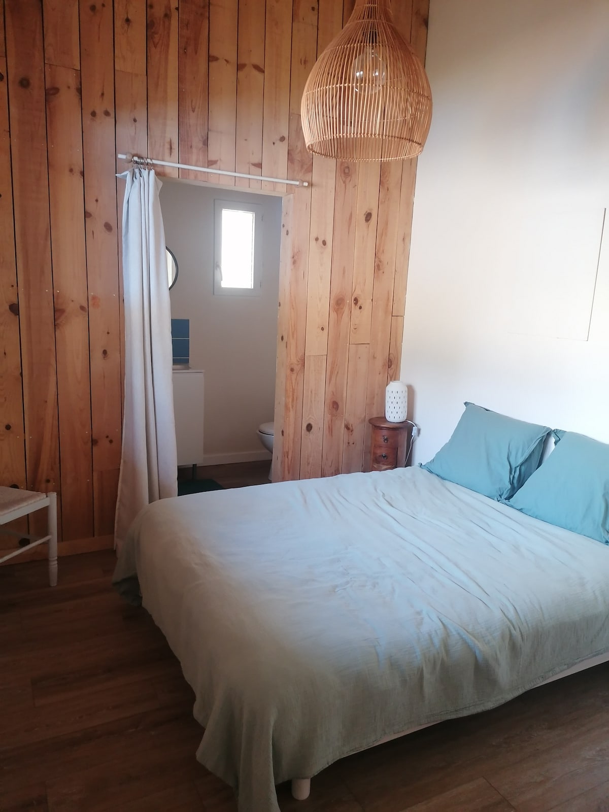 Acogedor loft a solo 45 minutos del aeropuerto de Burdeos y de la bahía. Encontrarás todas las comodidades: cocina equipada, baño moderno, aseo separado, salón con TV de pantalla plana y wifi. Relájese tomando una copa gracias al minibar o disfrute del patio y la terraza. Aparcamiento privado incluido. Ideal para una estancia agradable que combina comodidad y descubrimiento de la región.