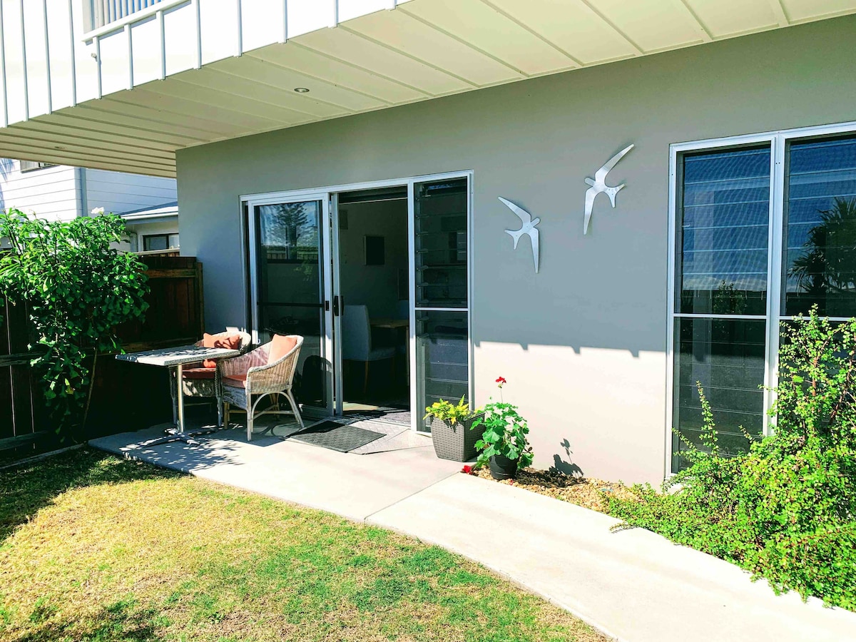 El refugio está a solo 2 minutos a pie de la playa, el lago, el club de surf, excelentes cafeterías y restaurantes, por lo que es el espacio perfecto para relajarse. Es una unidad moderna, independiente y soleada con un patio y jardín privados y vallados. Orientado al norte, captura el calor en invierno y las brisas frescas en verano. La cama tamaño queen de grosor completo es una cama de pared y se puede inclinar fácilmente hacia arriba en la pared para permitir un espacio flexible.