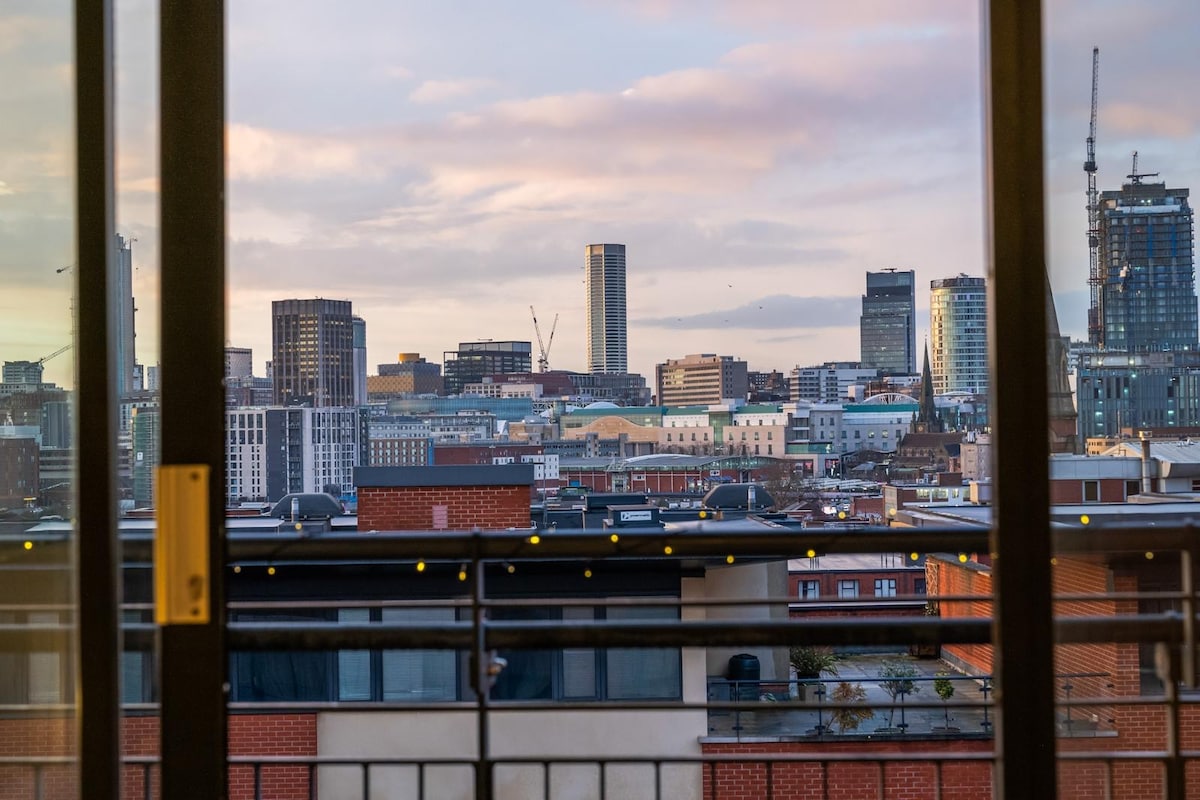 Luxury Penthouse Living: Birmingham Best Skyline View 🕰️24 Hour Self Check-In Top Floor Penthouse. Enjoy Birmingham skyline views from the double balcony with outdoor seating. Sleeps 4 (King Bed, Double Sofa-Bed, Small Kid Sofa-Bed). Features a full kitchen, bath/shower, luxury amenities, and hotel linen. Location: 9 min walk to Bullring/City Centre. Easy access to all train/coach stations. Parking: Free street parking or paid secure parking available. Secure self check-in.