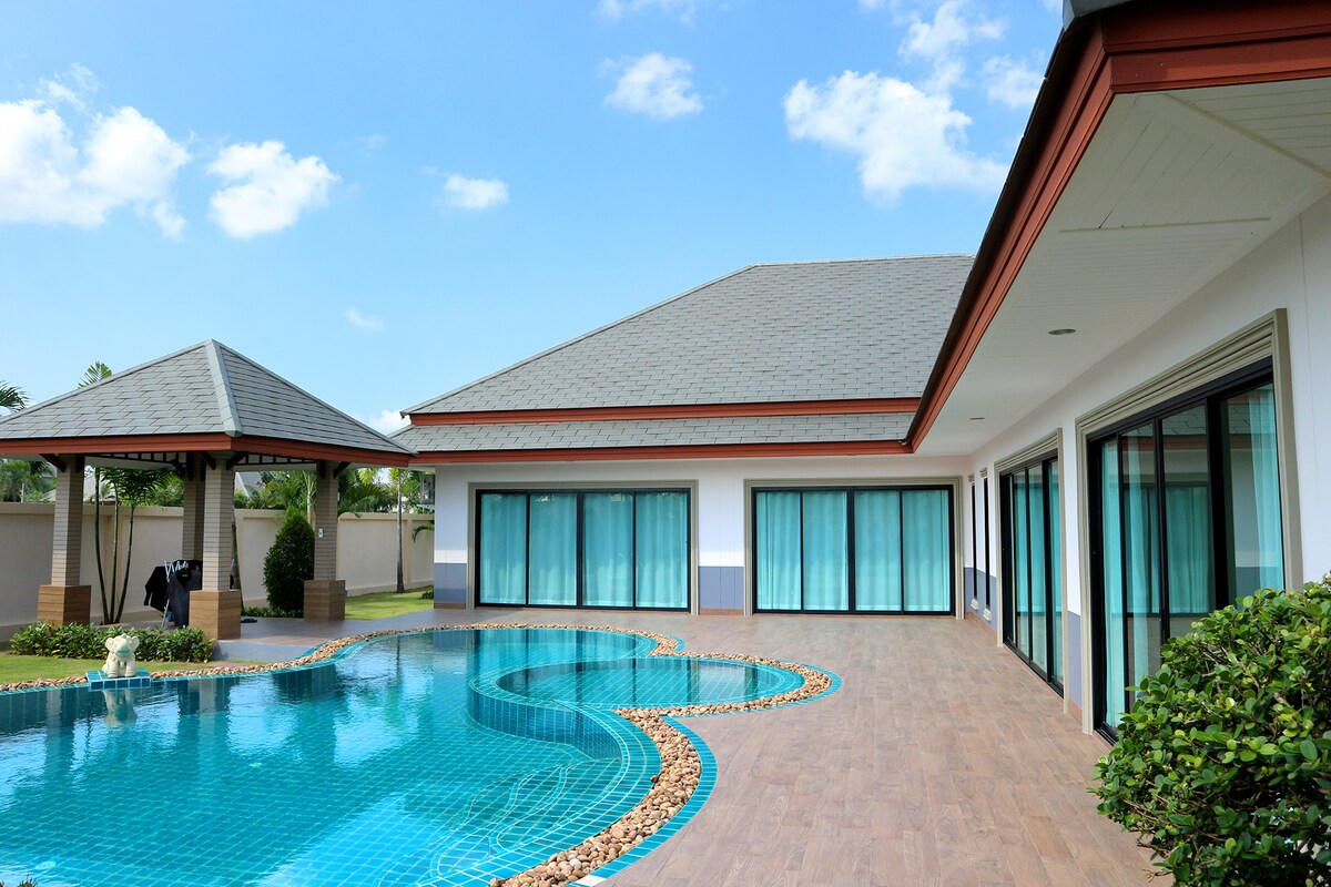 亲爱的房客朋友,您好! ①探索别墅,这是一个令人惊叹的角落房源,拥有3间装饰精美的卧室,风格奢华。 享受宽敞的生活。 这栋别墅距离迷人的海滩和当地景点仅几分钟路程,是家庭和朋友的理想度假胜地。 配备空调、烧烤区、无线网络等便利设施。 ②我们的房源位于许多景点的中心地带!距离以下列表仅5分钟路程: -赛凯海滩( Sai Kaew Beach ) - Legend Siam -邦萨尔海滩 -哥伦比亚水上乐园 -邦萨尔( Bang Sare )生鲜市场 -东芭乐园( Nong Nooch Tropical Garden ) -班安菲海滩( Ban Amphoe Beach ) - Khao Chi Chan -银湖葡萄园( Silverlake Vineyard ) - Upside Down House -距离Jomtien海滩20分钟车程 ③别墅出行方便,生活便利,安静舒适,能容纳6人聚餐,超大客厅餐厅,管家24小时免费贴心服务 ④有偿服务 曼谷芭提雅接送机、各大秀场门票优惠预定、高端定制、租车、包车、包船、翻译、地陪向导、厨师等。