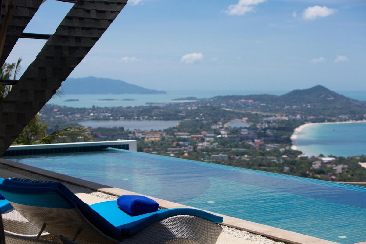 Esta magnífica villa nueva y contemporánea con una de las vistas más hermosas de Koh Samui, con su piscina infinita y jacuzzi es impresionante, se encuentra frente al golfo de Tailandia, y tiene vistas al parque marino de Ang Thong y la isla de Koh Phangan. ¡Una vez dentro, no querrás salir! La villa es lujosa, con prestaciones de alta gama. Es un verdadero paraíso que no deja a nadie indiferente, además de su incomparable relación calidad-precio.