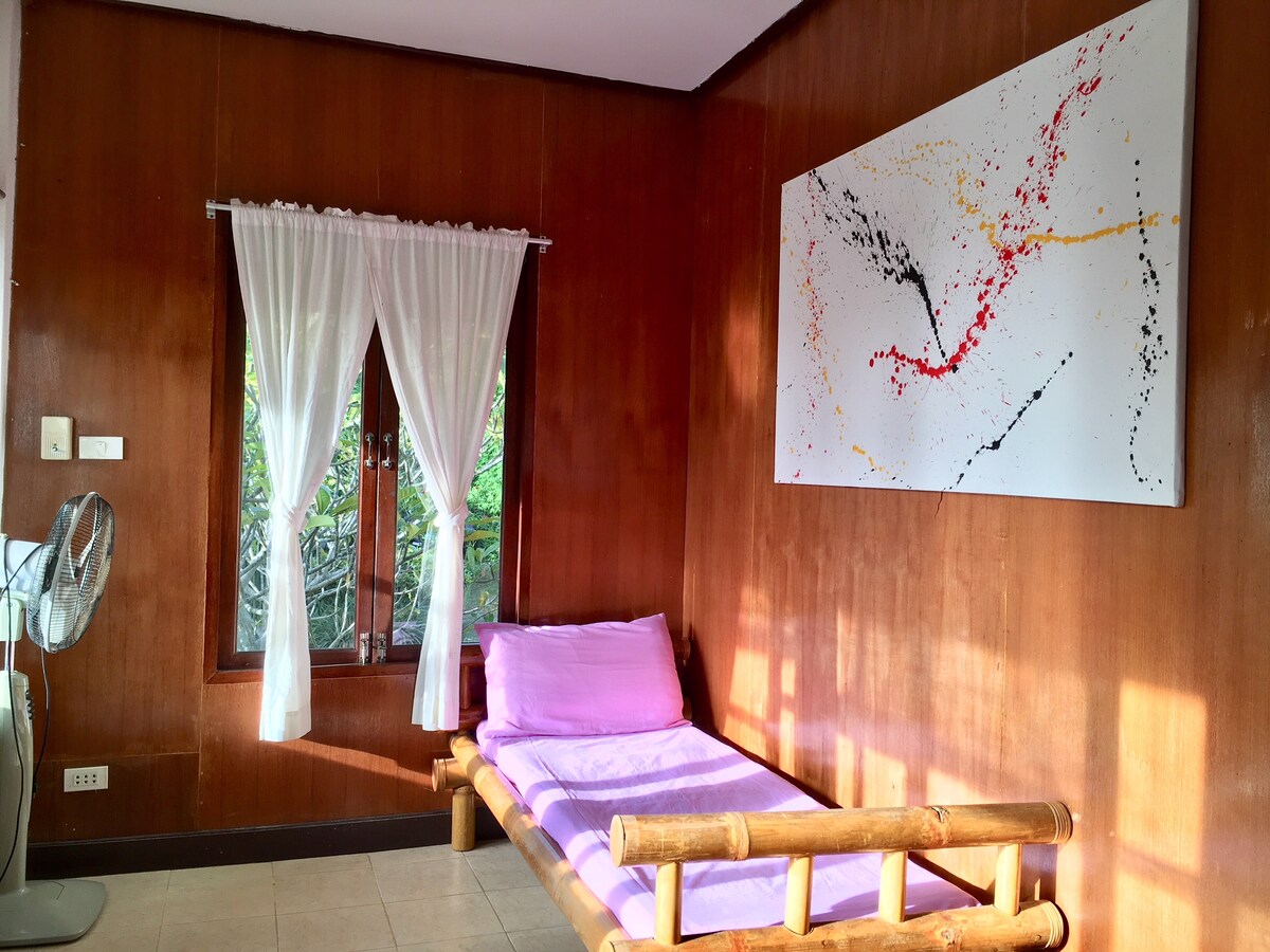 A DIY Solo Retreat without paying a fortune, staying at this cute cozy Aircon beachfront bungalow with good WiFi, so close to the sea with serenity beach right in front plus short walking distance to the mountain to go hiking and spend time in Silence with nature. Calm & peaceful atmosphere of international guests no more than 10 who believe in the healing power of nature. Convenient location, with public transports, Cafe & Restaurants, Fruits shop, motorbike rentals and tour. *strict 1 Adult*