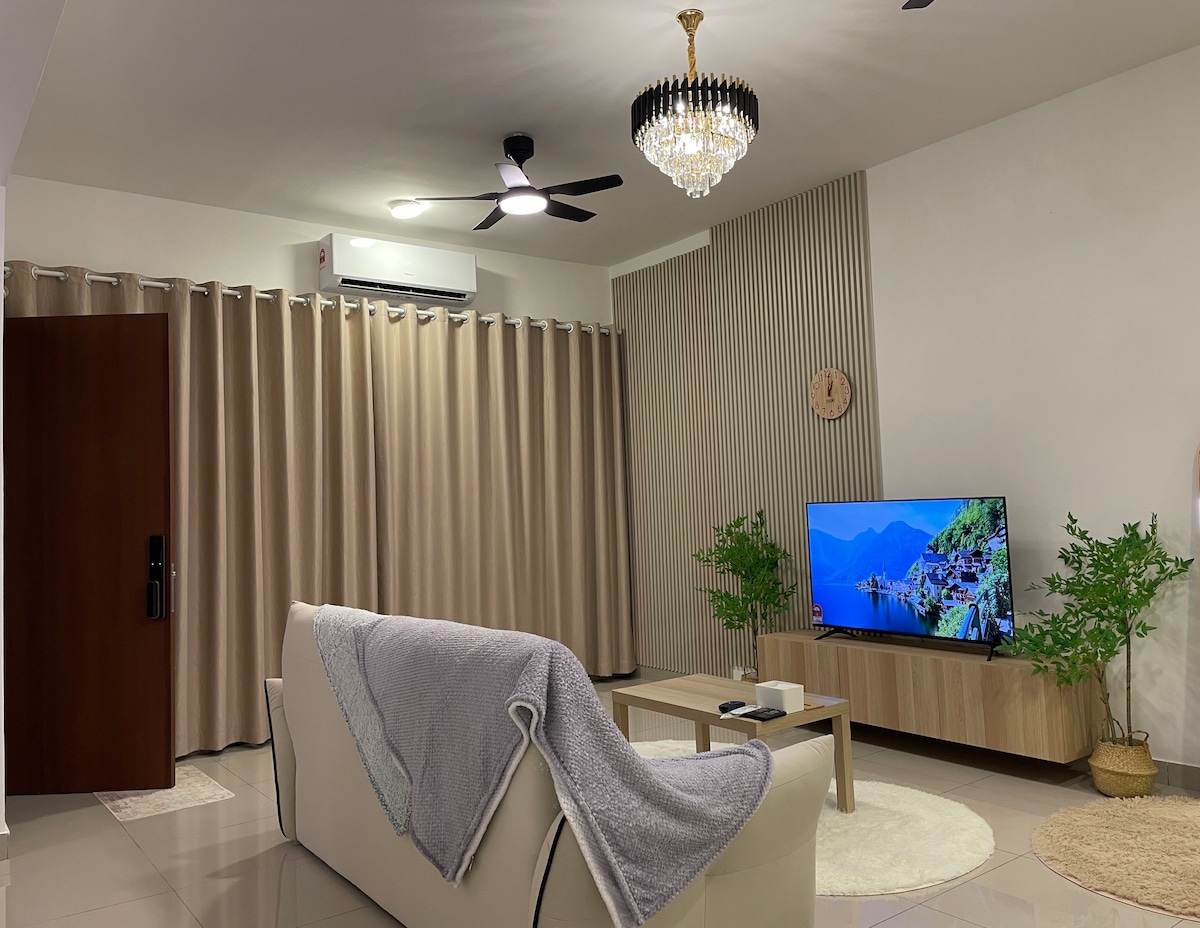 Our unit designed with white & black concept, nearby Toppen Ikea, Aeon Tebrau, Mount Austin trendy cafes and Johor Jaya Street food vendors and restaurants . We provide: *500Mbps high-speed WiFi *fully air-conditioned (5 units aircon) *karaoke & TV box system (Jazpiper) *65inch smart TV *mahjong set & table *board games *simple kitchenware *SK Magic water purifier *towels *shampoo *body wash *coffee & tea