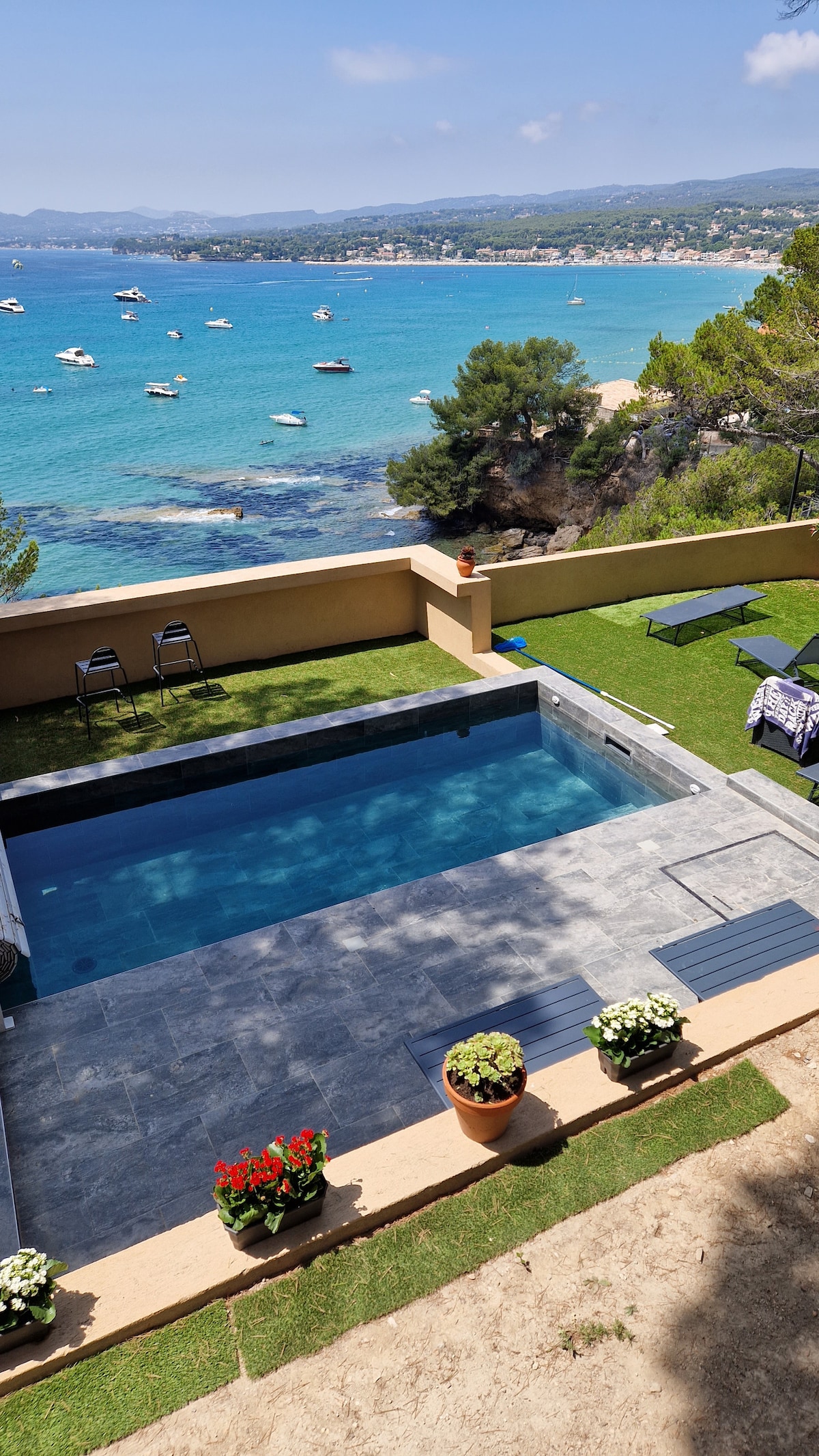 Relájese en este alojamiento totalmente renovado, con todas las comodidades, de 2 habitaciones, independiente, de una sola planta, con aire acondicionado, un gran jardín privado y aparcamiento seguro. A pie a 5 minutos del mar para las diversas calas y 10 minutos para la playa de arena y 15 minutos del centro de la ciudad (tiendas y puerto). Jardín privado amueblado: zona de comedor bajo pérgola, con plancha, nevera/congelador, zona de estar, zona de solárium con tumbonas y juegos (ping pong y petanca) y ducha tibia exterior y tendedero.