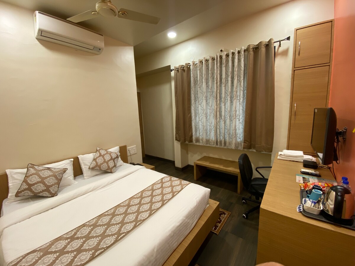 Designed for effortless business travel, the Superior Queen Room offers a clean, calm, and efficient stay. The room features a plush queen bed, work-friendly layout, thoughtful lighting, air-conditioning, and a soothing ambience for deep rest. Ideal for solo travelers, short corporate stays, and quick city stopovers in Magarpatta City.