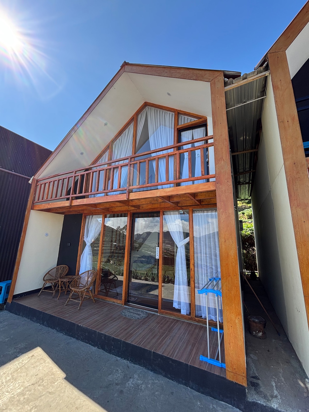 villa con piscina privada dieng la ubicación es muy estratégica a solo 1 minuto del punto 0 Dieng, solo caminar. Lo especial de esta villa es que puedes nadar en la piscina privada o darte un chapuzón en la bañera con vistas al templo de Arjuna y las colinas de Dieng. La capacidad ideal es de 6 a 8 personas, ya que aquí hay 1 habitación privada con 1 cama tamaño king y 1 habitación en el altillo en el segundo piso con 2 camas grandes. Cada habitación está equipada con un baño privado con calentador de agua. Las instalaciones son muy completas. Aquí se divierte uno.