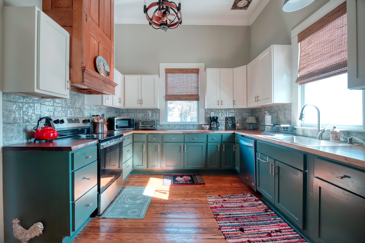 Relájate en esta escapada única y tranquila. The Indigo House es una casa Mill de principios de siglo recientemente renovada ubicada en el centro de Maysville. Está decorada con piezas y decoración de época europeas y estadounidenses. Disfruta de excelentes noches de descanso en colchones nuevos. Se proporcionan tres amplios dormitorios con armarios y aparadores para guardar tu ropa. Incluye una cama tamaño king y dos camas tamaño queen. La cocina de tamaño completo está bien equipada con utensilios de cocina básicos y electrodomésticos nuevos.