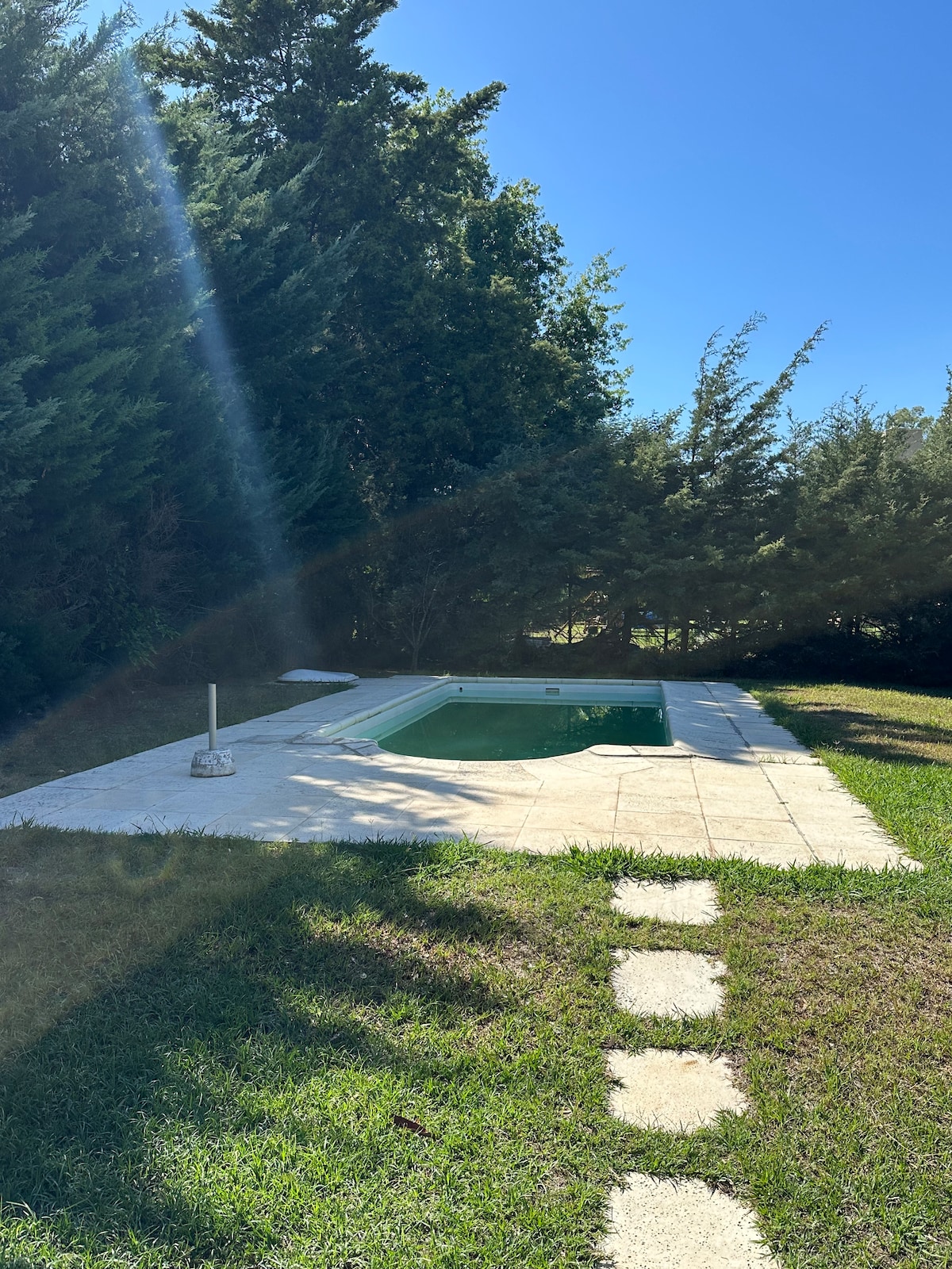 Relájate en esta Hospedaje para 4 personas 👥👥 Cuenta con habitación 🛏️ matrimonial con cama de dos plazas con aire acondicionado f/c Pieza con dos camas 🛏️ de una plaza. Living, cocina comedor con aire acondicionado f/c. TV 🛋️ Baño completo 🛀 Parque con arboleda añeja, 🌴🌴Parrilla, Fogonero. 🏊🏊⛱️ Pileta de natación de 3 x 8 mts. Lugar colonia Suiza Baradero. Camino empedrado. Lugar ideal para descansar y conectarte con la naturaleza. ☀️🌴🏊⛱️ Ingreso al lugar 10 hs y egreso 9 hs