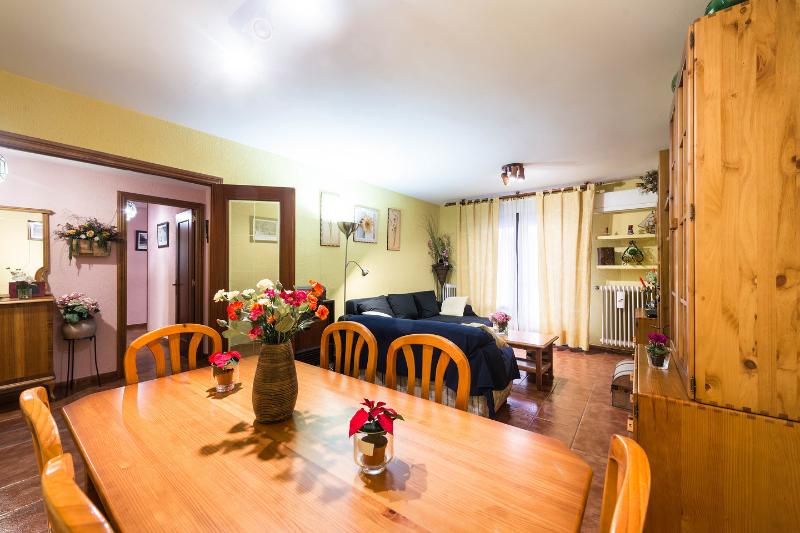 Situado en barrio residencial tranquilo ●● AIRE ACONDICIONADO ●● ● A 5 min en coche recinto ferial IFEMA ● A 10 min en coche del AEROPUERTO ● A menos de 10 min en coche del estadio METROPOLITANO. Situado en un primer piso de un edificio residencial de 2 plantas, apartamento de 65m² luminoso y muy tranquilo. WiFi incluido. Estacionamiento gratuito en la calle. Apartamento con 1 dormitorio y 1 salón amplio con puerta corredera que se transforma en dormitorio independiente.