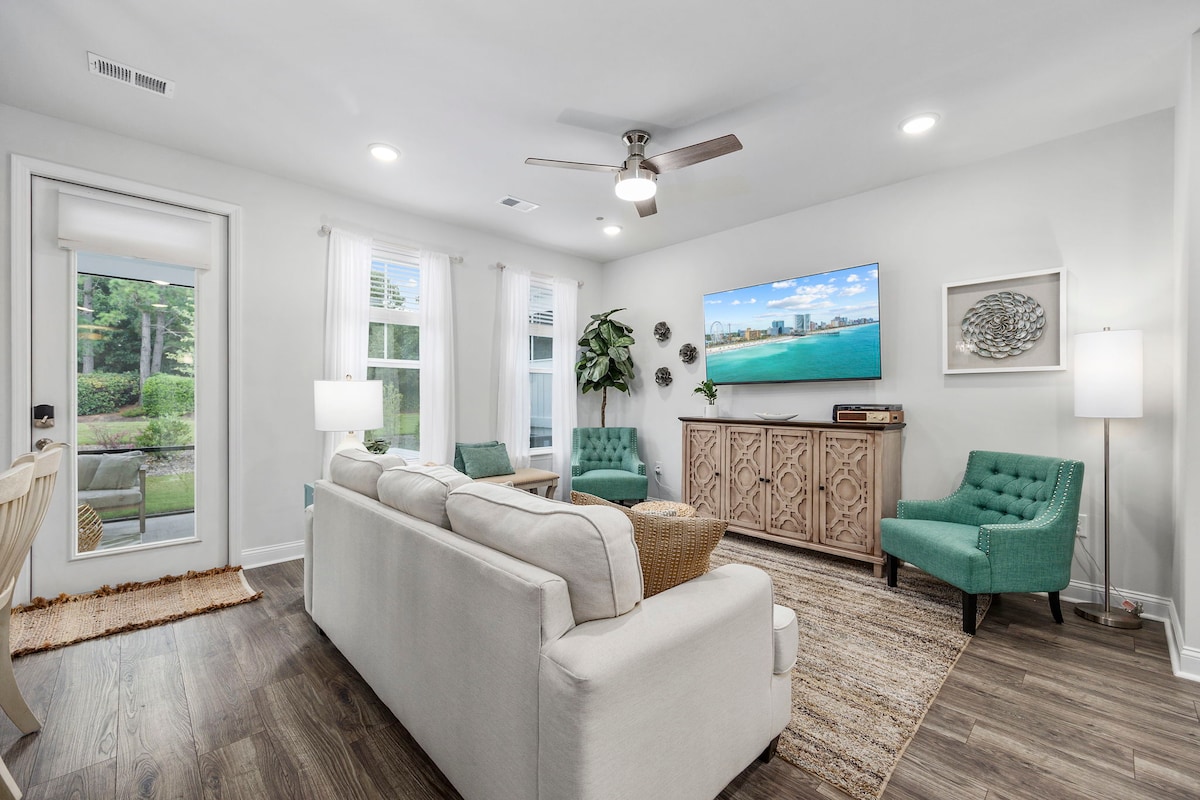 Este precioso alojamiento de 2 dormitorios y 2 baños tiene la ubicación perfecta en el codiciado Barefoot Village, justo detrás de Barefoot Landing. La casa está a poca distancia a pie de una pequeña piscina comunitaria, una gran piscina de agua salada y un puerto deportivo, un bar/parrilla y una tienda de comestibles. Está convenientemente ubicado cerca de tiendas y campos de golf de campeonato a lo largo de la vía fluvial intracostera. La playa está a 5 minutos en coche o hay un servicio de transporte. Incluye: wifi, lavadora/secadora, cargadores, ruido blanco y un amplio escritorio para trabajar a distancia.