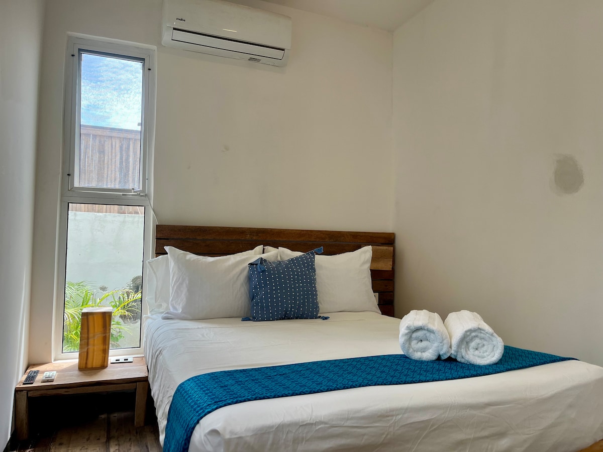 Disfruta de una experiencia con estilo único y elegante en este alojamiento céntrico a una cuadra de la playa caminando en el mero corazón de zihuatanejo cerca de restaurantes, tiendas, lavandería , museos, cafeterías, bares, iglesias y lo mejor de todo este departamento es el único que cuenta con Roof Garden totalmente privado.. Esta ubicado en el tercer piso, cuenta con recamara propia, sofá cama, baño equipado, balcón, cocina funcional, WiFi, agua caliente..