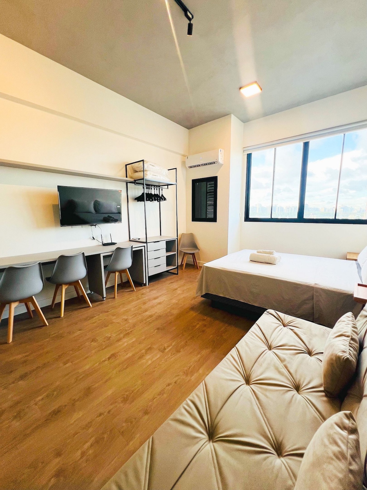 Viva Aracaju com estilo neste estúdio multifuncional! Situado na Coroa do Meio, você estará a passos do Shopping RioMar (180m) e pertinho da Orla da Atalaia (2,8km). Perfeito para até 4 hóspedes, oferece conforto, internet de alta velocidade e praticidade com check-in automático. O espaço é novo, moderno, climatizado e pensado para quem busca produtividade ou descanso. Localização imbatível para quem quer conveniência e mobilidade.