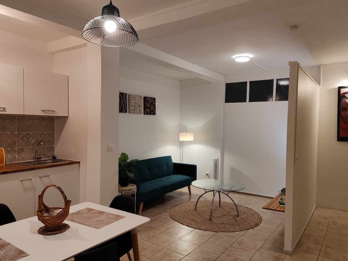 Estudio en la parte trasera de nuestra villa, con acceso por escaleras. Se ofrece recibimiento o acceso autónomo. Pequeño patio agradable acondicionado para relajarse. Estudio nuevo y con encanto con sofá cama BZ, minisalón, zona de desayuno y cocina bien equipada. Para los amantes del turismo verde, estará a 10 minutos en coche de la Soufrière, ríos y rutas de senderismo. Playa de Rivière Sens a 15 minutos. Hospital y centro de la ciudad a 10 minutos. Un remanso de paz y tranquilidad después de sus salidas.