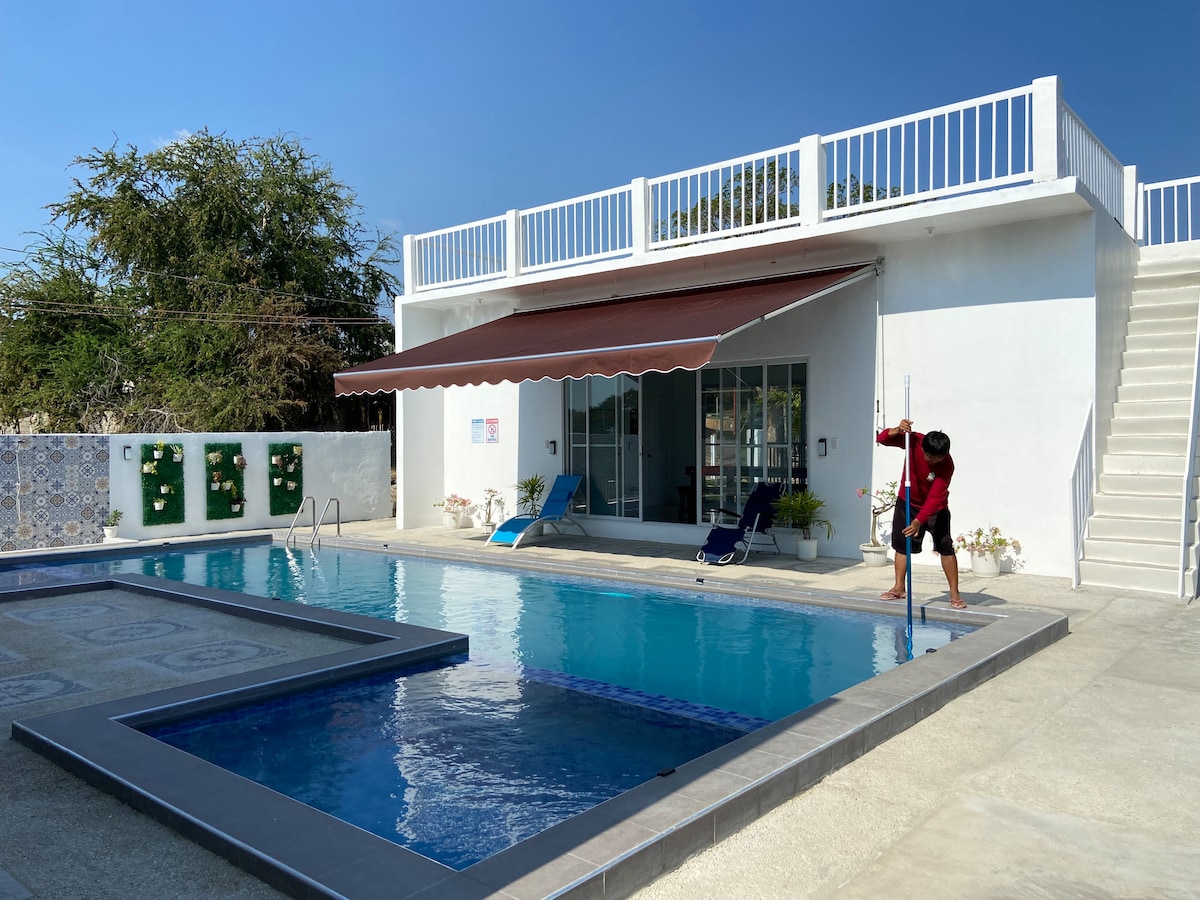 Uno de los lugares de Mabini donde la playa y la piscina están a pocos pasos de tu habitación. No hay caminos difíciles y empinados, lo que es común en otras ofertas en Mabini. El lugar tiene un balcón con vistas a las aguas prístinas de Anilao. Disfruta del jardín junto a la playa mientras tú y tu compañía os relajáis o cenáis. Detrás de tu habitación está la piscina que se encuentra entre la casa de huéspedes. Cada habitación tiene 2 camas tamaño queen y un comedor separado. Cocina semi funcional.