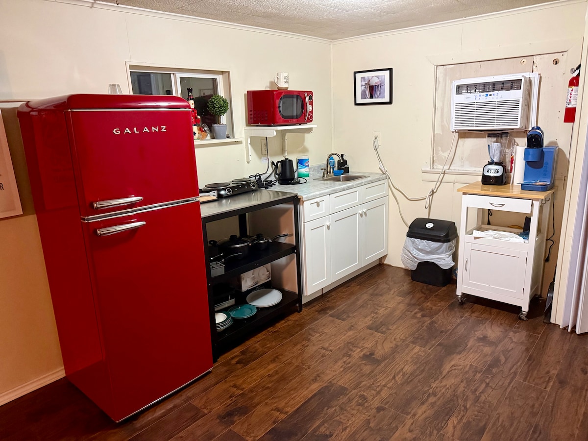 ¡Con confianza! Una verdadera escapada acogedora ubicada en el distrito histórico. Disfrute de una casa privada y relajante a la sombra de nogales después de un largo turno o para su próximo viaje de pesca. Equipado con una cocina completa y lavadora/secadora: siéntase como en casa, evite la lavandería y cocine sus comidas como lo haría en la comodidad de su propia casa. ¡O camine hasta un restaurante cercano!