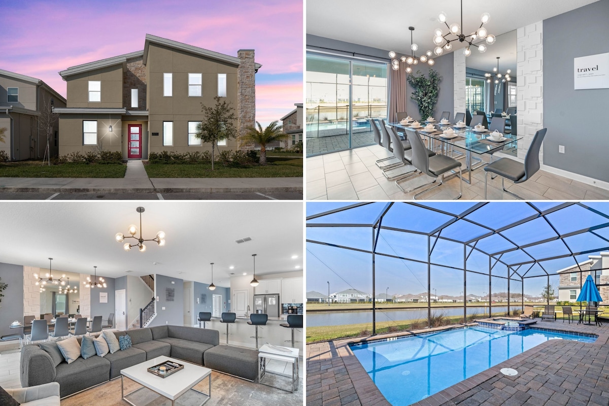 Sit back and relax in this stylish home with all the amenities you need for a fun family getaway. This home has a spacious layout with 3 bedrooms and 2 baths. We have thought of everything so you don't have to-toiletries,washer/dryer, and wifi. Enjoy your morning coffee in the screened in pool area with a beautiful sunrise and lake view or sip a glass of wine while floating in the pool. Just minutes to Theme Parks and major highways, this is the dream home you have been waiting for!