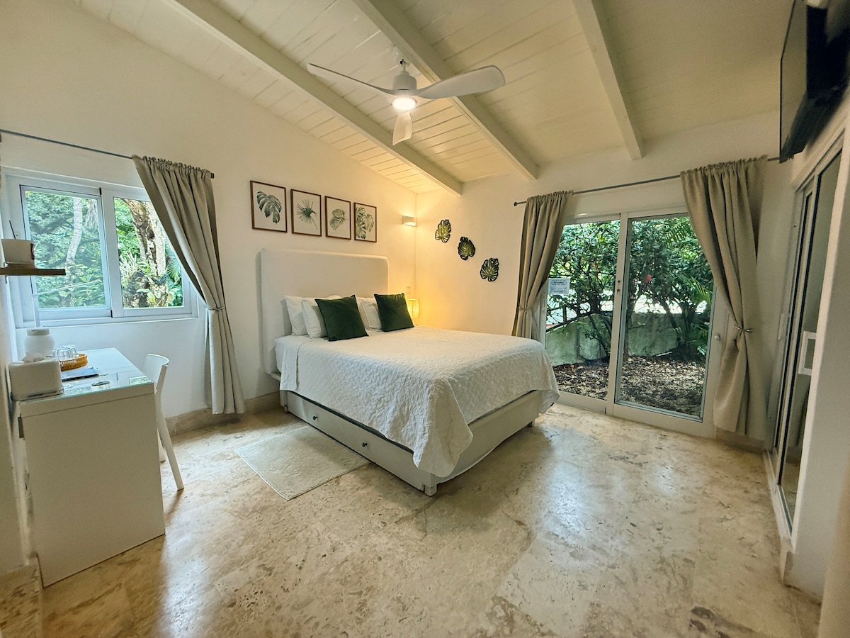 Private entrance bedroom in Casa de Campo, walking to Altos de Chavón. Located in Vista de Altos Apartments, with a cozy queen bed, hot water, fridge, microwave, stove, coffee maker, a/c, Netflix, WiFi, and work desk. $30 p/p for over two guests. Pets welcome for $50 per stay. Free parking, pool open until 9 pm. Enjoy free access to Altos de Chavón, Minitas Beach, and the Marina. Boat rental to Palmilla in our Boston Whaler is also available at the Marina.