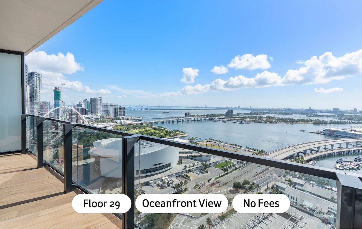 Estudio del piso 29 en Brickell con vistas a la ciudad sin obstáculos. Al otro lado de la calle del Bayside Market, a 2 cuadras del Kaseya Center, hogar del Miami Heat y todos los conciertos principales. Frost Museum of Science & Aquarium a 6 cuadras. Restaurantes como Sexy Fish, Komodo, Gekko y E11even a menos de 5 minutos. El Food Hall más nuevo de Brickell, Julia & Henry 's, a solo 3 minutos a pie. Wynwood, The Design District, South Beach y el Aeropuerto Internacional de Miami a menos de 10 minutos.