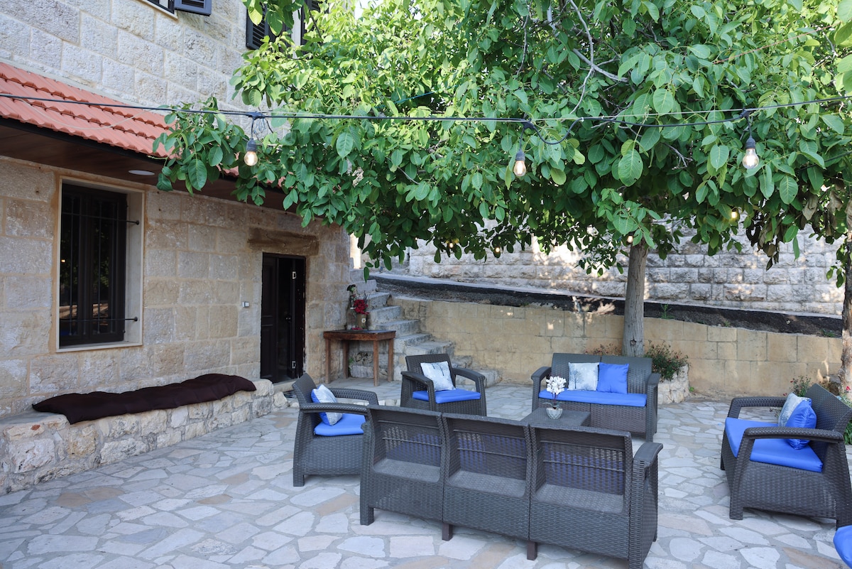Casa de huéspedes privada y acogedora con vistas impresionantes del valle de Qanoubin. Situado en el corazón de un espacio natural privado con sus propios jardines afrutados, bosque privado de cedro y su propio río. ¡El ambiente es mágico! Finca segura y privada donde puedes disfrutar de la vista, el sonido del agua corriente junto con una hoguera, horno de pizza, parrilla y barbacoa.